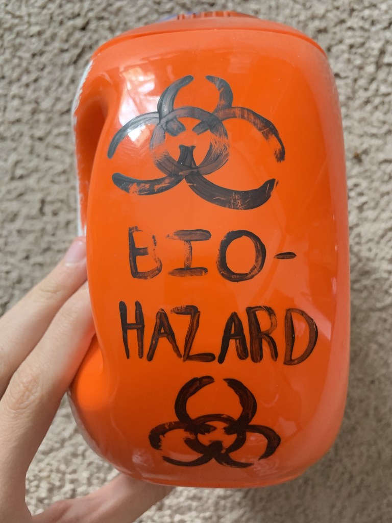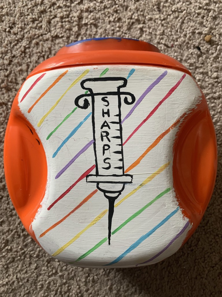 There’s this box. It’s a tide pods container painted with plants, planets, a biohazard symbol, a rainbow syringe, and a crude painting of a penis spewing green goo. It serves as the sharps container for all of the used syringes I have acquired over the few years I have been doing my shots, and at this point, it’s in pretty rough shape. The paint is chipping, the lid is cracked, and it’s about 10 shots away from being too full to use, but I still find myself unable to part with it. This old and withering tide pod box has been with me since the beginning of my transition and is still with me three whole years later. Since 2020 and the start of my transition, this box has seen more of my highs and lows than any person ever has. It was there when I did my first shot unassisted and witnessed the sheer joy that radiated off of me and was there during the breakup I went through when I came out to my partner and I saw the heartbreak of me thinking that if one person broke up with me because I’m trans, then surely others would as well. It was there when I was a freshman living in the dorms and even now when I am only a month out from finishing my degree.